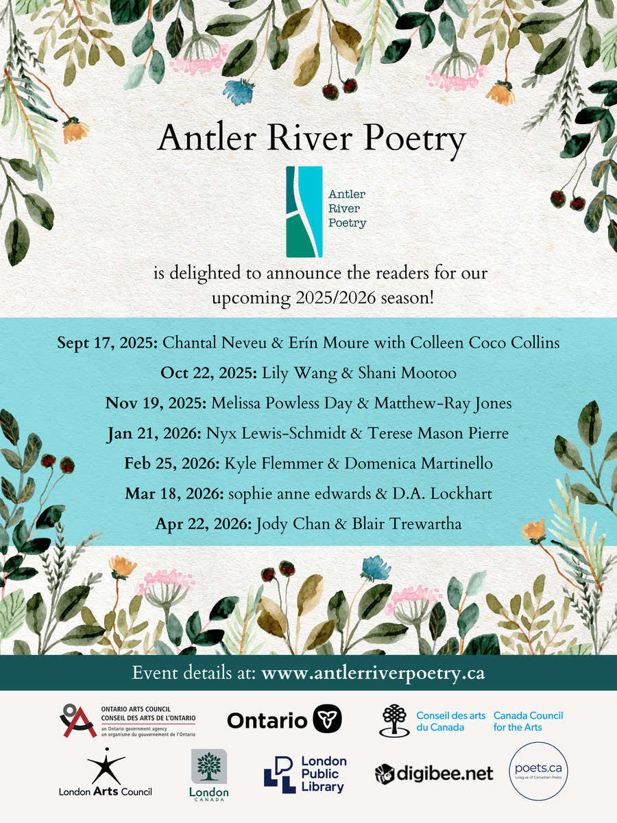 sophie anne edwards, author of Conversations with the Kagawong River, is one of the featured poets at the March 2026 edition of Antler River Poetry at the Landon Branch of the London Public Library! Watch this space for further details.