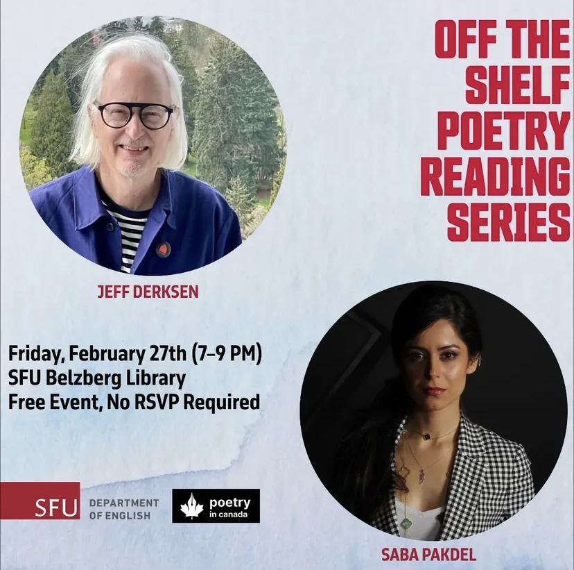 Jeff Derksen, author of Future Works, The Vestiges and more, will be sharing poetry alongside Saba Pakdel at the February instalment of the Off the Shelf Poetry Reading Series. For additional information, click here.