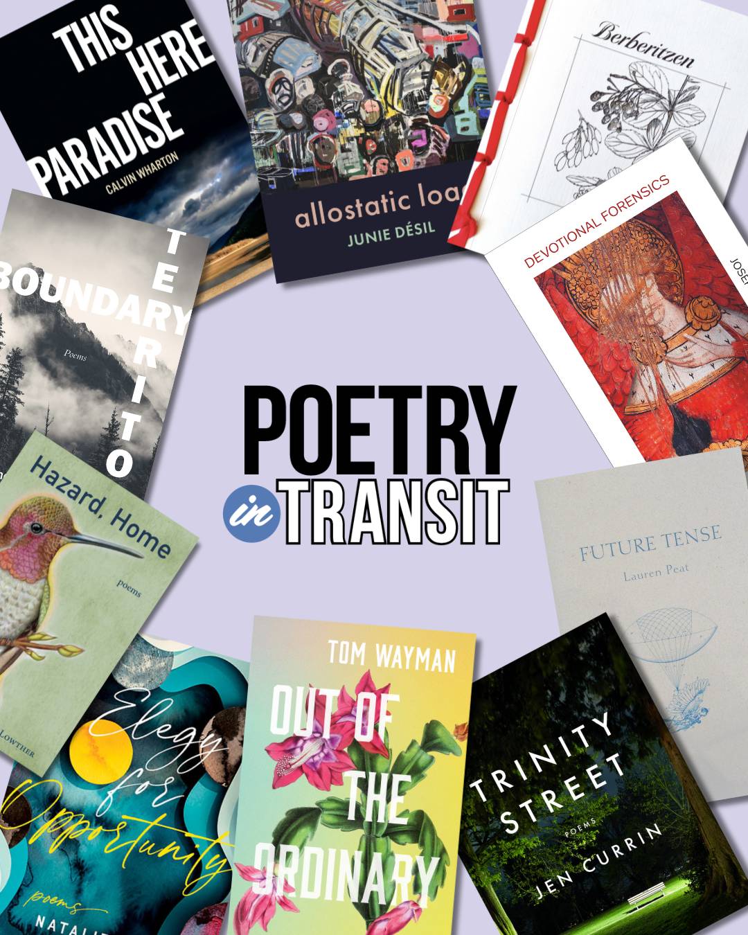 Poetry in Transit (brought to us by Books BC in partnership with TransLink and BC Transit) is a program that features the work of 10 BC poets on transit cars and shelters throughout the province. The program is now in its 29th year. A huge congratulations to this year’s excellent roster of authors!
