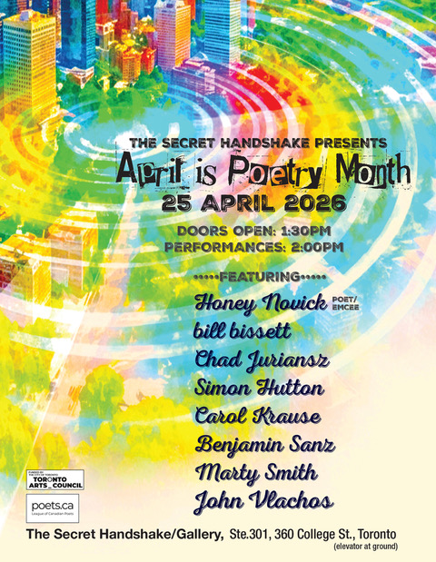Catch the author of th book uv lost passwords 1 bill bissett reading alongside Honey Novick, Chad Juriansz, Simon Hutton, Carol Krause, Benjamin Sanz, Marty Smith, and John Vlachos. Doors open at 1:30 p.m., readings begin at 2:00 p.m. EDT.