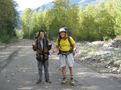 Unlike our friend Russell, we didn’t take an M1 rifle with a twenty-odd round clip, nor did I have a thirty-year old female companion. On the other hand, we had an arsenal consisting of only two pocket knives, two canisters of bear spray, eighteen rounds of bear bangers (fireworks shot into the sky to scare off bears), and a six-inch buck knife. What we lacked in armaments we made up in smarts. A firearm was way down on my list of priorities, and I even find a hiking stick cumbersome, though we always had two close at hand and near our tent every night. Quickly securing a knife to the end makes a formidable weapon.